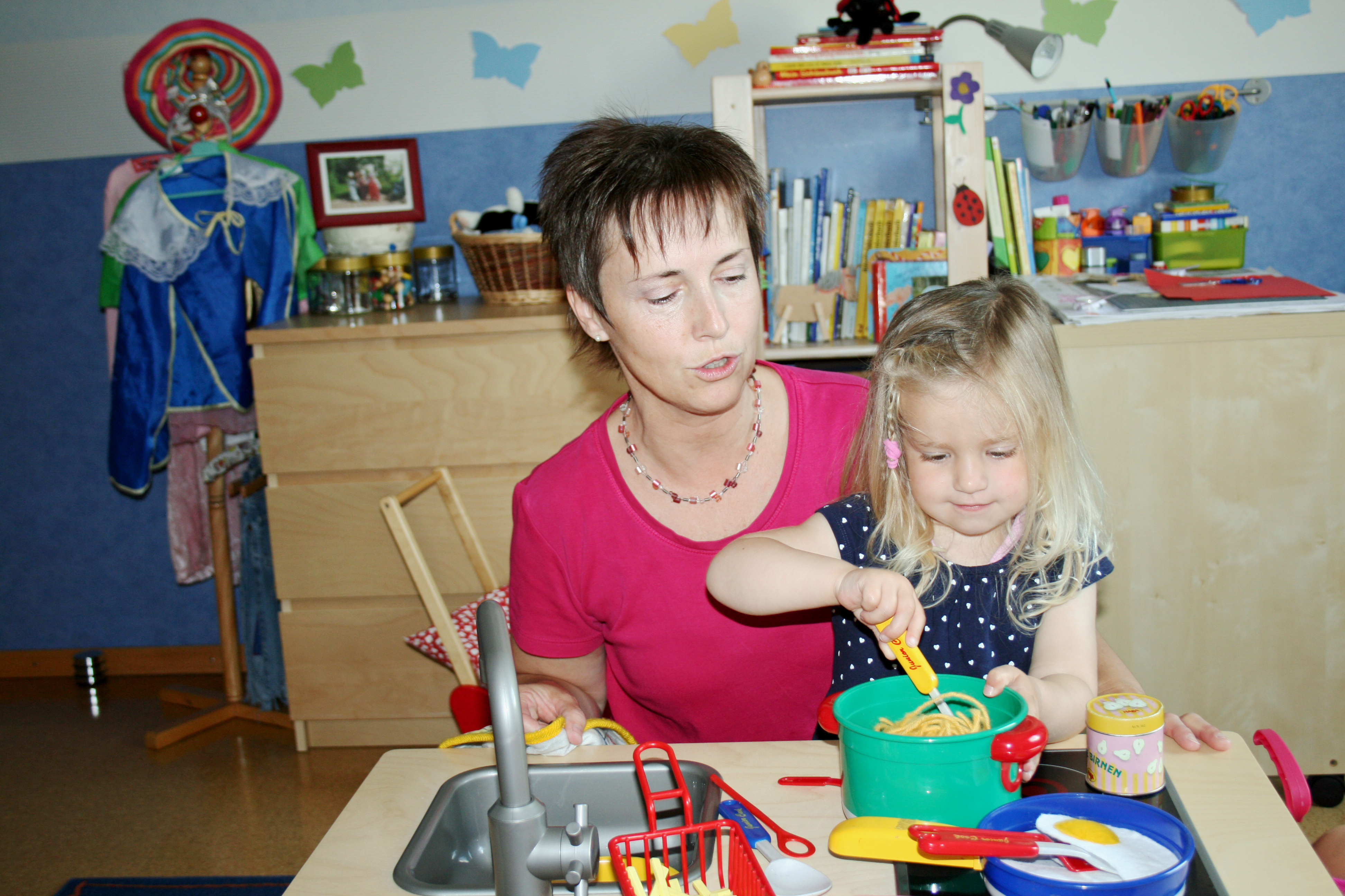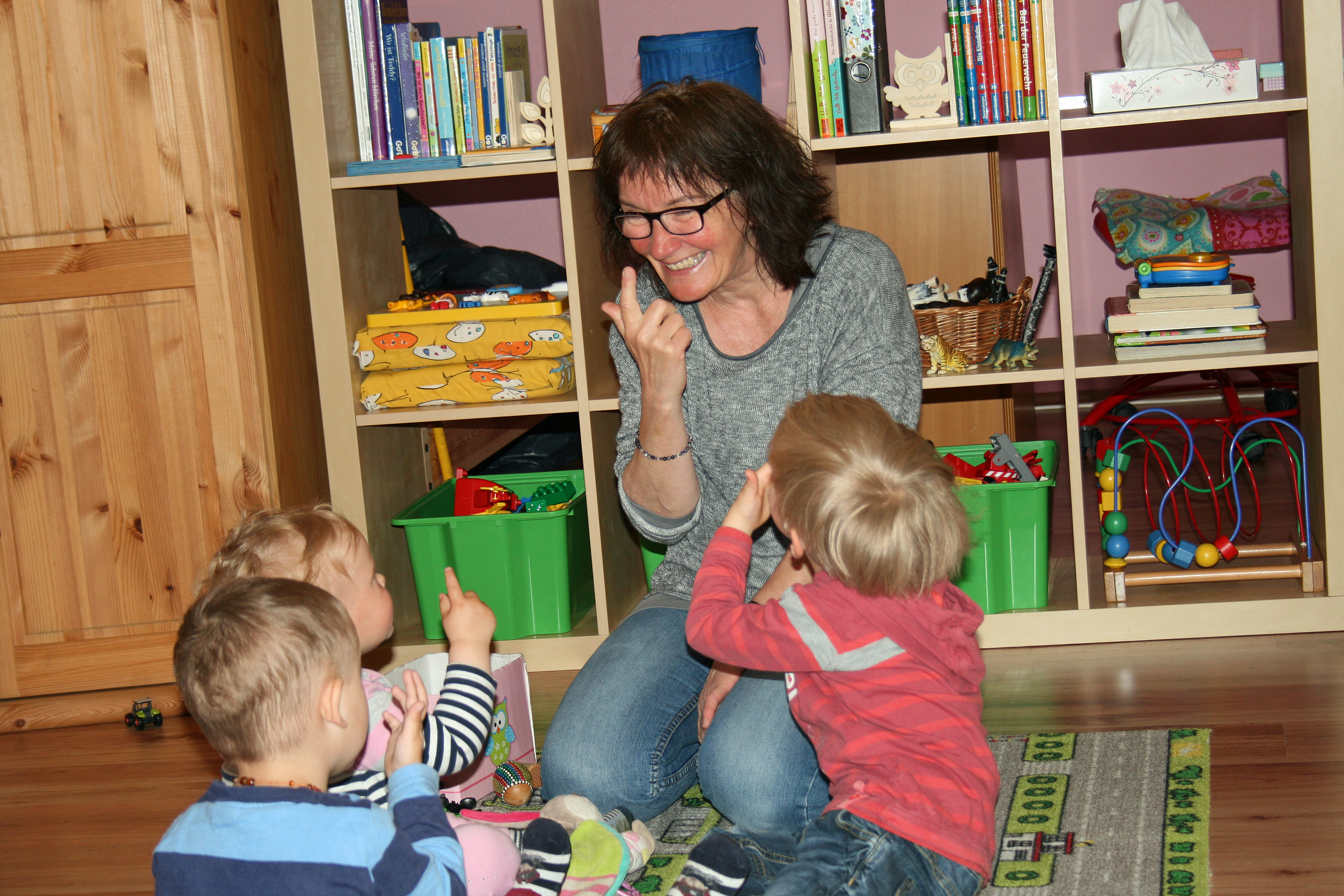 Bis zu 5 fremde Kinder gleichzeitig werden in der Regel im Haushalt der Kindertagespflegeperson betreut. Oft betreut diese, wenn vorhanden und im entsprechenden Alter, auch ihre eigenen Kinder. So entsteht eine familienähnliche Betreuungssituation.